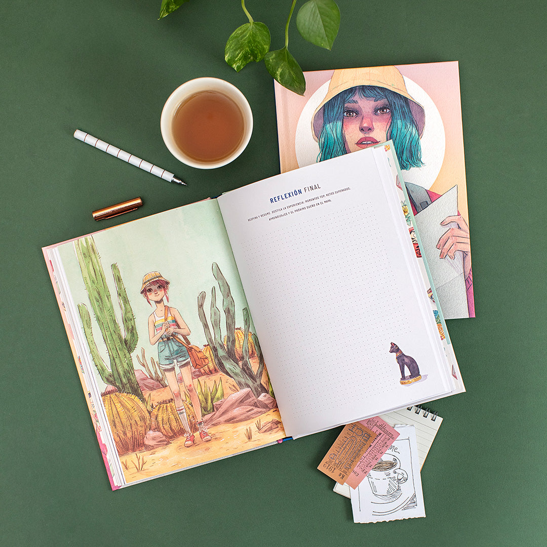 En estas páginas encontrarás espacios guiados para soñar, planificar, completar y revivir tus viajes. Cuando lo completes será tu mejor souvenir: único, personal y lleno de vida.