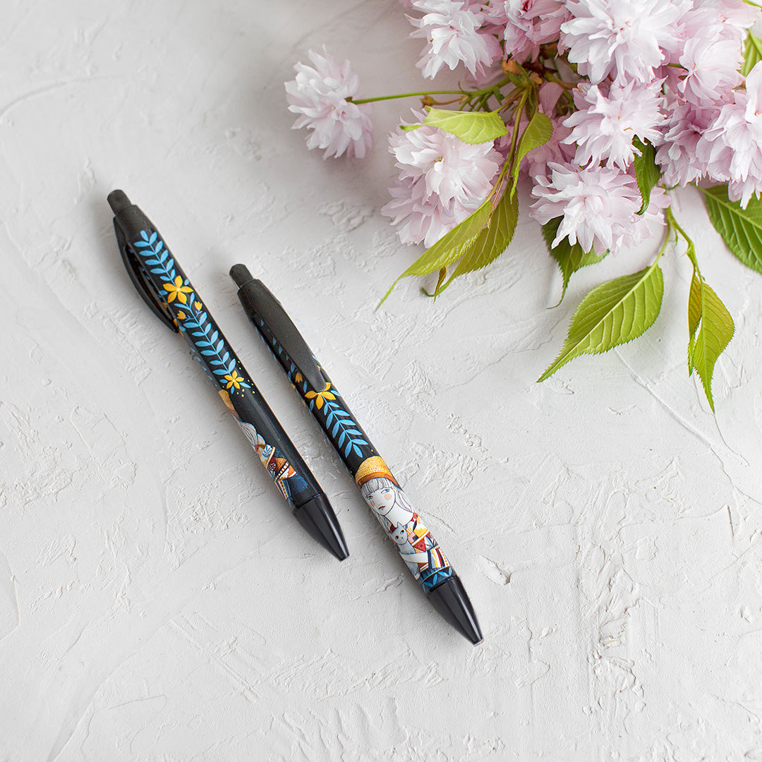 Bolígrafo de clic con ilustración a todo color de Lady Desidia. Tinta negra. Recambios estándar. Fabricado por BIC. Presentado en packaging personalizado.